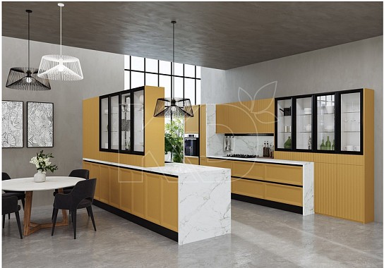 На сайте бренда «Кухонный двор» вы можете заказать гарнитур любой формы: линейный, угловой, с островом, полуостровом или барной стойкой.