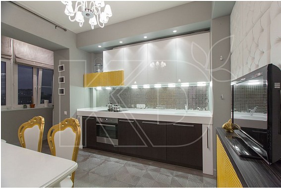 Дизайн кухни в бело-желтом цвете
