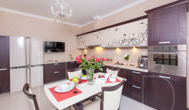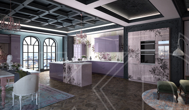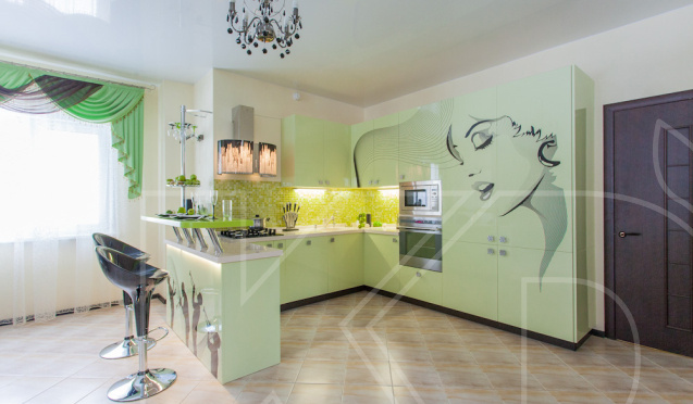 Кухни из МДФ с фотопечатью пользуются особой популярностью за счет доступной цены, высоких показателей долговечности и прочности.