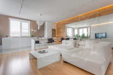 Остров используется для зонирования пространства, а также в качестве рабочей поверхности и обеденного стола. Если позволяют коммуникации, на нем можно установить варочную панель или раковину.