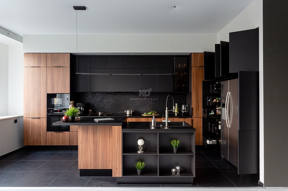 Современные интерьеры часто предполагают кухню с вашим дизайном, где границы между рабочей зоной и гостиной практически отсутствуют. В таких проектах дизайнеры бренда «Кухонный Двор» помогают подобрать мебель, которая будет органично сочетаться с интерьером всей квартиры: цвет, фактура, освещение и стиль — всё работает на создание единого гармоничного пространства.