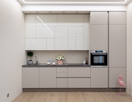 Линейная планировка часто используется в квартирах-студиях, где важно сохранить открытое пространство. Подобный гарнитур легко адаптируется под стили «минимализм» или «сканди», а значит — будет органично смотреться в любом современном интерьере.