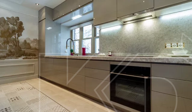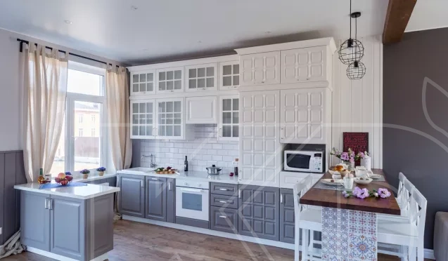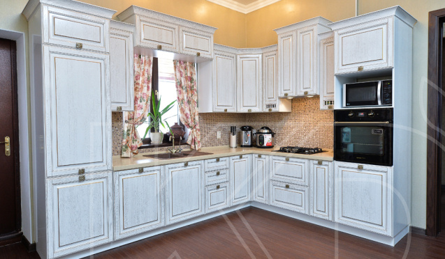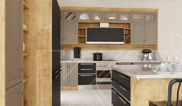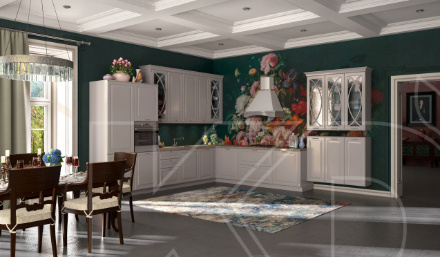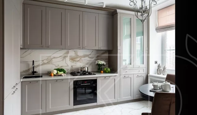 Классический. Серая кухня станет воплощением элегантности и поможет создать атмосферу спокойствия. Мебель для кухни дымчатого цвета оптимально сочетается с кремовыми, белыми или светло-серыми стенами. Также рекомендуется использовать мебель или элементы из натурального массива дерева, а также выбирать серебряный или золотой декор. Но для классики есть одно важное правило – наличие просторного помещения.