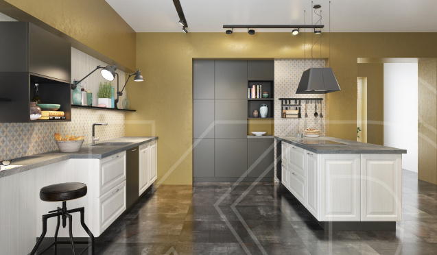- Прованс. Это исконно французский стиль, который приветствует серую кухню. Однако важно подбирать только светлые оттенки. Это правило касается напольного покрытия. В качестве дополнительного декора рекомендуется использовать как можно больше текстильных элементов, вышивки, глиняной посуды. Мебель в основном выбирается из дерева.