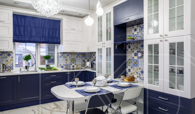 П-образные модели предназначены для загородных домов и больших квартир. Шкафы такого гарнитура займут место сразу возле трех смежных стен. Благодаря этому соблюдается принцип рабочего треугольника, когда мойка, плита и холодильник размещаются на одинаковом расстоянии.