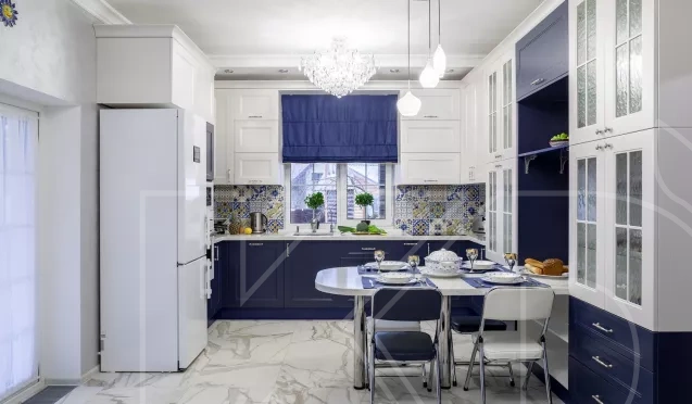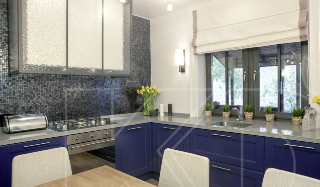Минимум декоративных элементов. бытовую технику, аксессуары и посуду лучше спрятать за фасадами. Также не следует украшать стены.