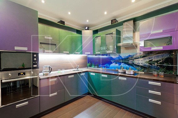 Ощущение свежести и легкости в интерьере создаст зелено-голубая кухня. Подобное цветовое решение вызывает позитивные ассоциации и расслабляет нервную систему. К основным преимуществам оформления кухни в зелено-голубых цветах можно отнести: