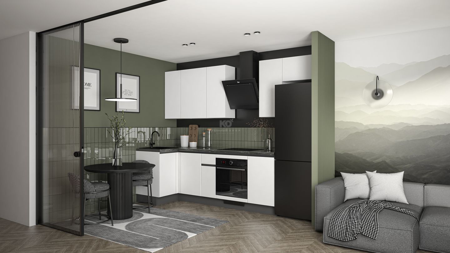 Угловая кухня Уна — практичное решение для тех, кто ценит безупречное качество, современный дизайн и комфортную цену. L-образная планировка делает её идеальной для компактных помещений — студий, апартаментов или небольших квартир, — позволяя эффективно использовать каждый сантиметр пространства.