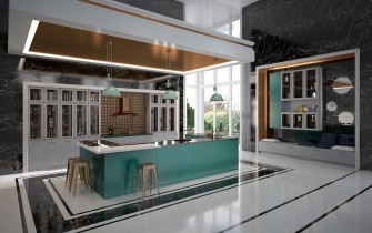 Чаще всего в середине комнаты размещается массивный стол-тумба, который называют кухонным островом. Этот предмет мебели многофункционален: может использоваться в качестве дополнительной рабочей поверхности или обеденного стола, а также способен стать хранилищем для посуды и других полезных на кухне мелочей.